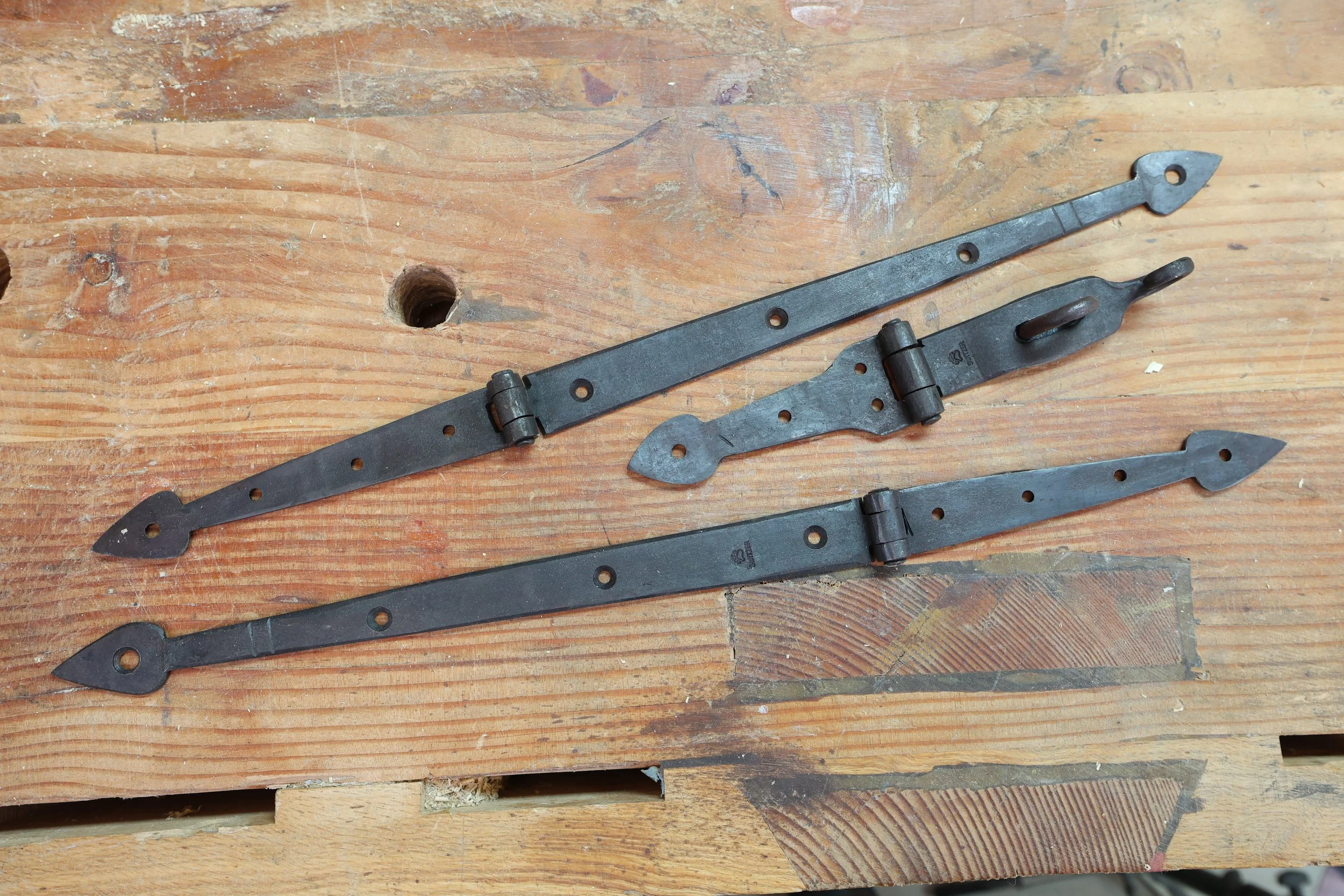 Hardware Categories: Select a Category Hardware Hearth Lighting Tools Camp Hardware Quick View Forged cross door handle $750.00 Add To Cart Added! Quick View Dutch Tool Chest Hinges with hasp $325.00 Sold out Sold Out Added! Quick View Small strap hinge $175.00 Add To Cart Added! Quick View H style cabinet hinge $25.00 Sold out Sold Out Added! Quick View Strap hinge $250.00 Sold out Sold Out Added! Quick View Megan's cats - chest lifts $225.00 Sold out Sold Out Added!